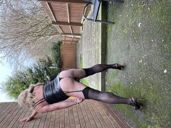 アマチュア女装Kellycd2022セクシーな熟女ストッキングヒールpvc屋外屋外パンティーでおしっこ